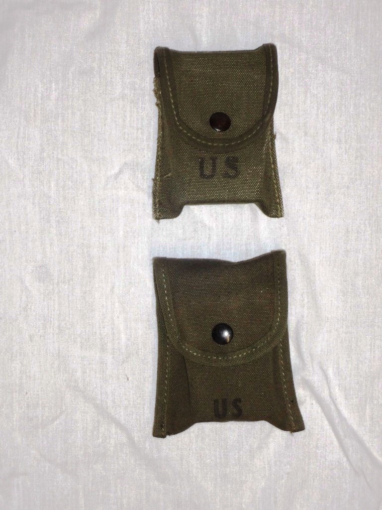 Note cotton trim on canteen covers, early square M-56 butt pack, and standard M-56 Universal Ammunition Pouches.