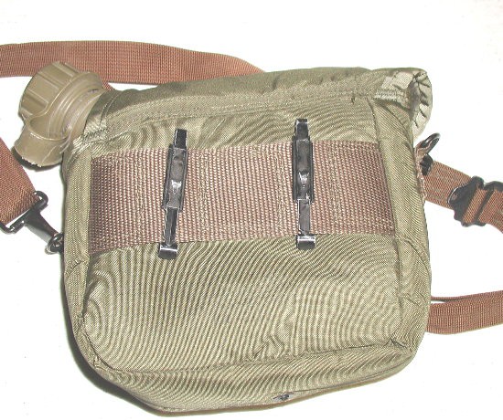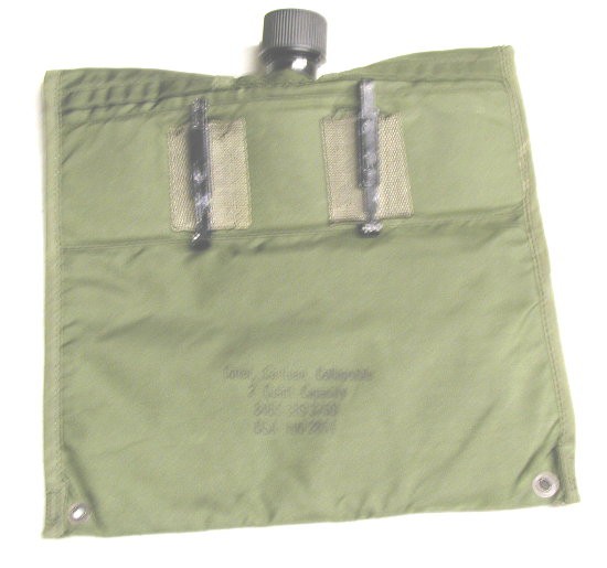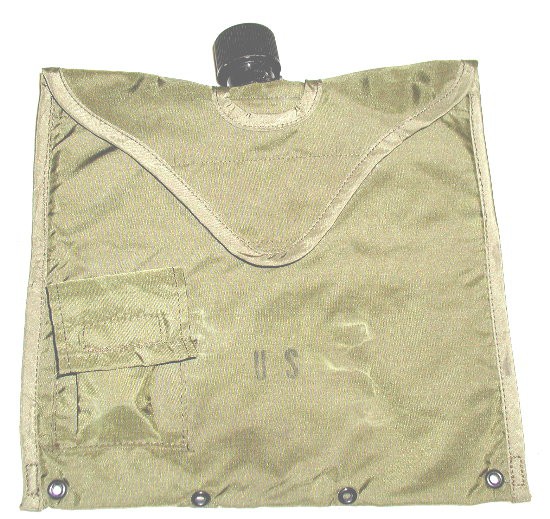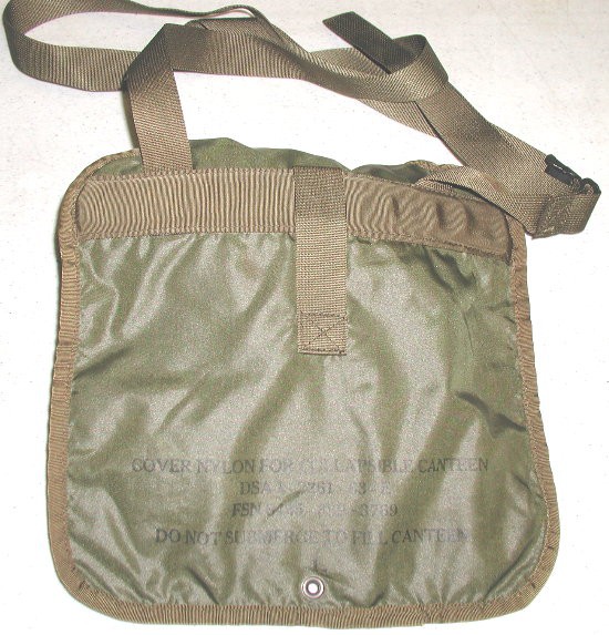 The "semi-rigid" 2qt bladder introduced in 1967 also came with a new "3rd. Pattern" carrier. This carrier was a complete redesign made of rubberized fabric and utilizing both clips and a shoulder strap. These were unlined and were produced in 67 only. They are quite rare today. The next variation of the 2qt cover had all of the features of the "3rd Pattern" plus the addition of a pile lining and it was made entirely of nylon. This "4th Pattern" was made from 1968 until 1971 when it was replaced in 1972 with the "modern" 2qt cover that is still produced today. (the key difference between a 68 to 71 cover and a 72 to modern is the shape of the flap. The early ones have a distinctive scallop curved edge where the modern cover is straight across.)