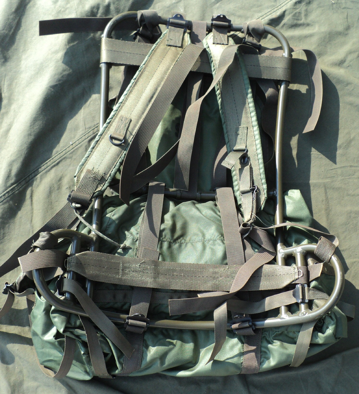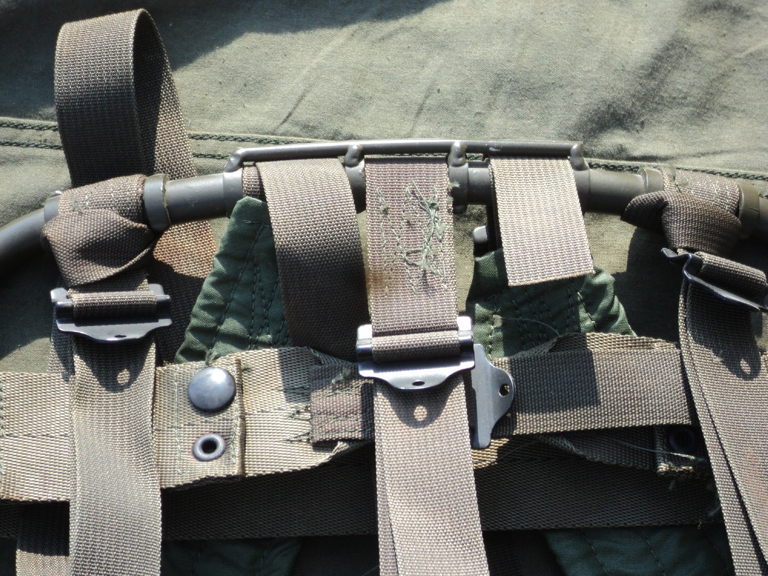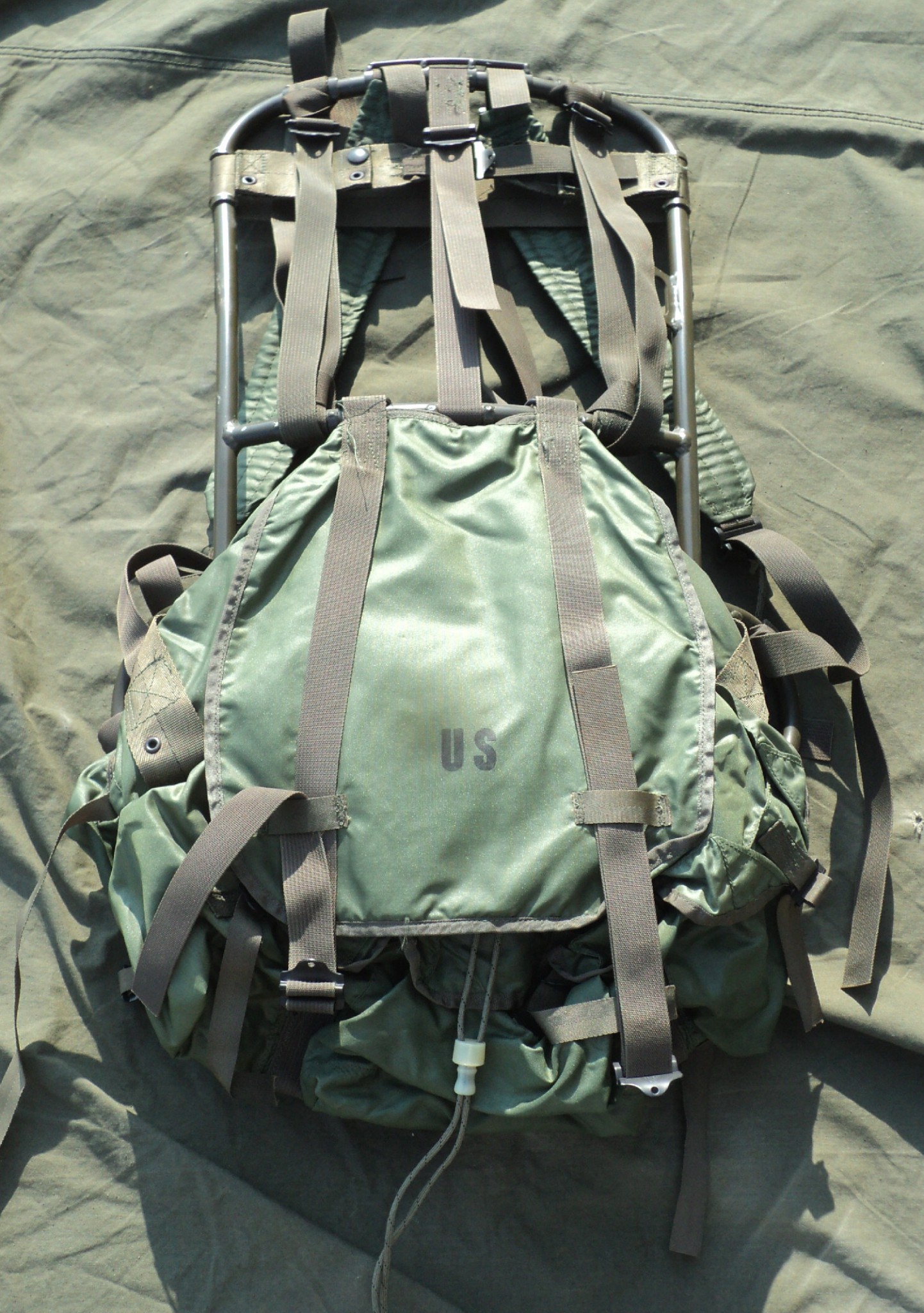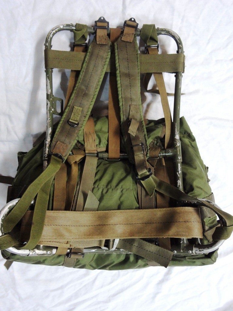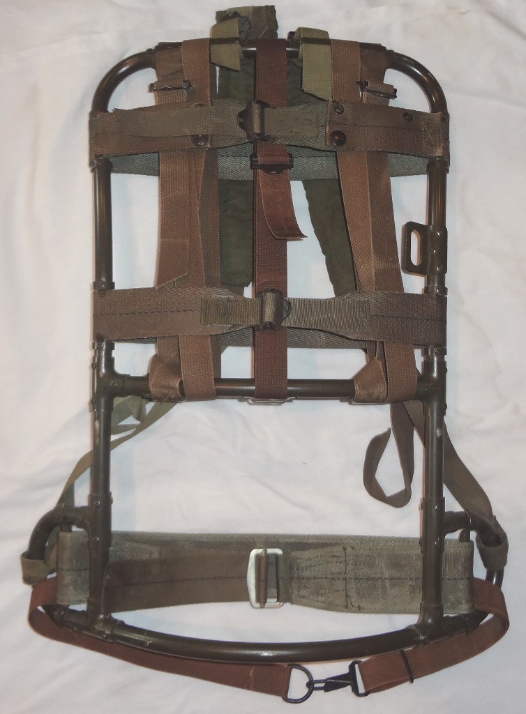 The changes between the earlier riveted rucksacks and the P-68 are very minor. The one key difference from a collector standpoint is on the frame itself. The frame is riveted like the P-65, but they added a second horizontal strap to the frame that runs below the top horizontal strap.