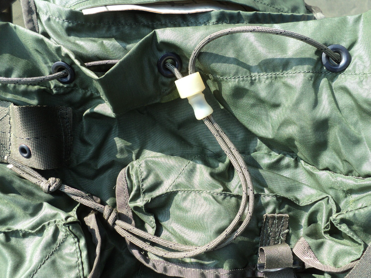 Unlike the ALICE Pack, the Tropical Rucksack has the shoulder straps sewn to the rucksack body. There will also be an X shaped metal frame built into the rucksack. On the pocket side, while the large exterior pockets look similar, the Tropical Rucksack has plastic snaps on the pocket.